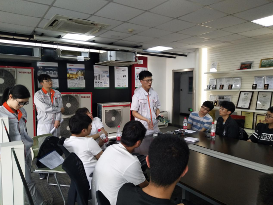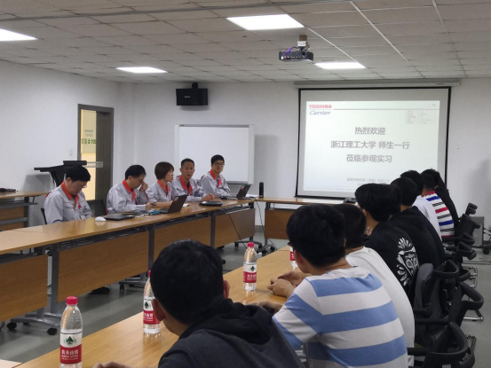 东芝总经理佐藤先生对我们的到来表示欢迎,并传达了构建校企合作的想法。随后,企业安排了展厅、制造现场、实验室的参观活动,他向我们介绍了公司先进的空调产品,展示了空调制造的流水线,公司的研发条件以及员工的工作环境等。最后,企业还安排了座谈会,邀请了在东芝就职的优秀校友周太鸿、蓝梅、陈杉。他们从大学生活谈到求职就业,强调了在校期间学好专业知识的重要性,以及提前做好职业生涯规划的必要性。