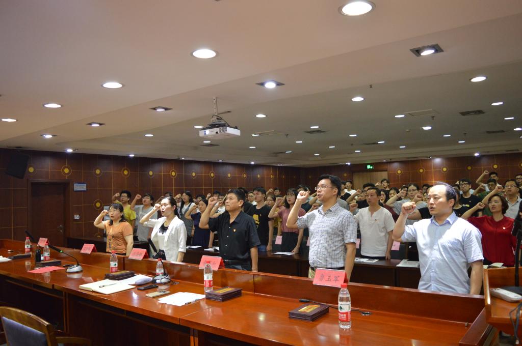 本次大会的主要内容为庆祝中国共产党成立97周年暨“七一”表彰大会,学院党委理论学习中心组扩大会议暨“学习新思想 千万师生同上一堂课”活动,共七个议程。大会开始,全体起立,奏唱国歌。潘海鹏书记带领全体党员同志重温入党誓词。俞高红同志宣读学院优秀党支部、优秀共产党员和优秀支部书记名单,学院领导为各获奖支部与党员颁发荣誉证书。随后,优秀党员代表上台发言。机械工程实验教学中心党支部的优秀教工党员马善红结合自身工作,讲述教工党员如何为人师表、积极奉献;控制工程研究生党支部书记赵梦恩分享了自己研究生阶段的支教与工作经历,并呼吁全体党员勿忘初心。之后,学院学工办主任方水明对我校2018年度教职工政治理论学习的有关安排进行解读。最后一项议程是“学习新思想 千万师生同上一堂课”活动,由学院党委书记上主题党课。潘书记以《学深悟透习近平教育思想 努力写好高等教育“奋进之笔”》为主题,向各位同志讲解了新时代高等教育的主要任务与要求,分享个人学习心得与感悟,并鼓励教师党员以身作则,落实好立德树人这一根本任务。这生动的一课也为党员教师们明确了目标、理顺了思路、振奋了精神。最后,会议在阵阵掌声中完满结束。