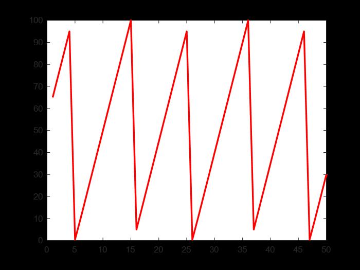 如图所示得到其亮度PWM变化的曲线,可将其改编应用至实际使用中实现MATLAB端接收STM32的数据并实时显示,从而控制相应的对象。并可以将其他的数字拓展至相应的功能,实现MATLAB端输入数字的图片,不同的数字实现对STM32不同控制的完整功能。
