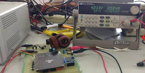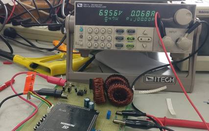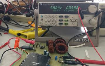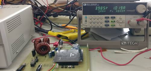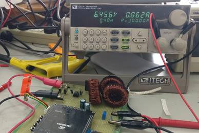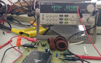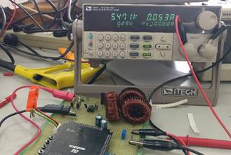 在电路带负载测试时,PID调节的效果较好。但是在电路负载阻值减小时,发现电路的输出电压不能稳定在输出值,阻值越小,失压越严重。经查阅资料和向老师同学请教,怀疑是电感值太小、储能小的原因。因此后期改为三个功率电感的并联,带载能力有所提高。