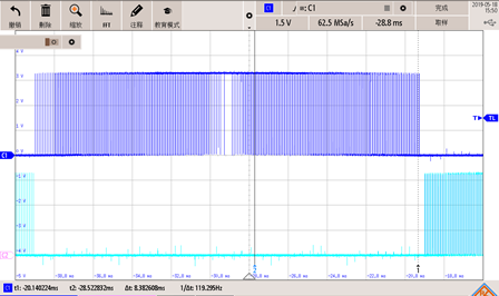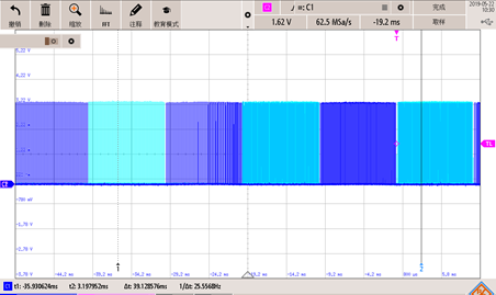 接示波器观察STM32输出端口的两路PWM波,发现其符合互补且占空比呈正弦规律变化的趋势。